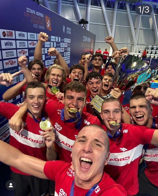 Hrvatska muška vaterpolska reprezentacija do 19 godina osvojila je naslov europskog prvaka Europe nakon što je u finalu u bugarskom Burgasu pobijedila Crnu Goru! Našem učeniku Viktoru Tončiniću i cijeloj njegovoj zlatnoj ekipi šaljemo najveće čestitke!!